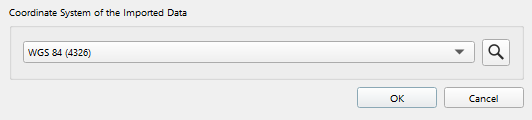 Once the processed point files are selected choose the Coordinate System of the file from the drop down menu or use the search button (see Figure 5), then select "Ok" to import the processed point files into your Qimera Project.