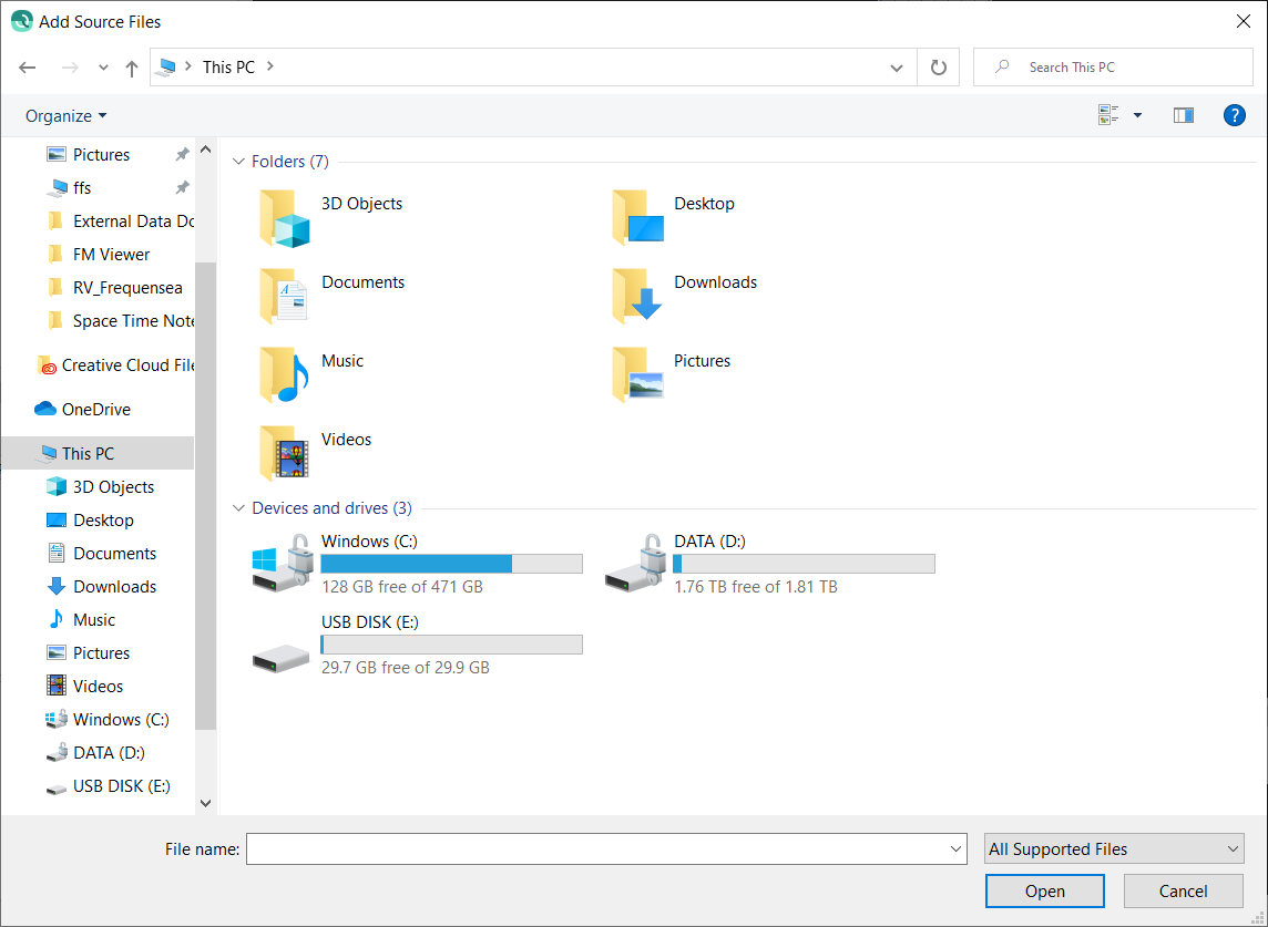 QPDs are the easiest processed point files to add as they are already in the QPS point file format. To add QPDs select the files wanted and select "Open".
