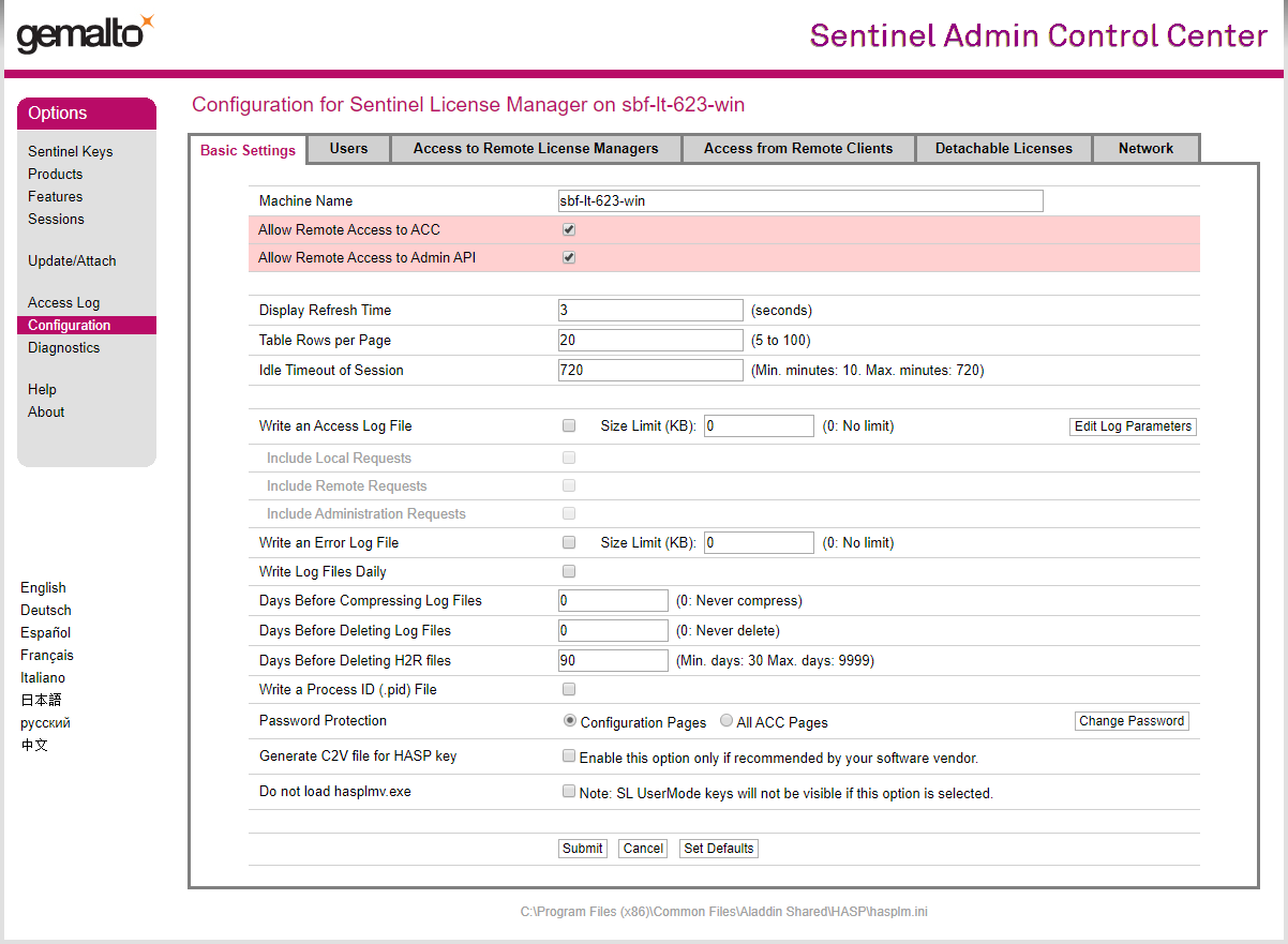 By changing the Basic Settings from the host machine, the client machines will be able to remotely access the Admin Control Center (ACC) and Admin API to change the settings.