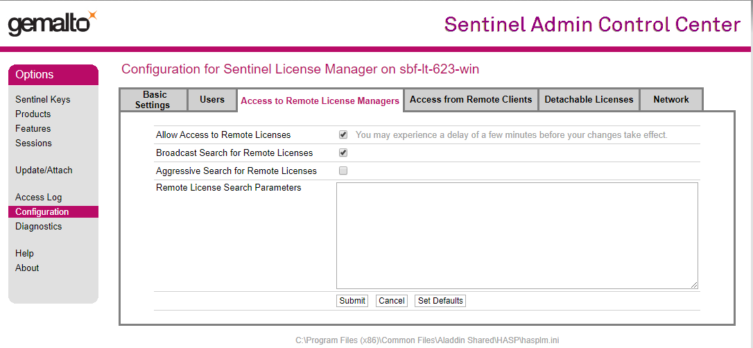 3. Under Remote License Search Parameters, enter the IP address or hostname of machine that holds the key.