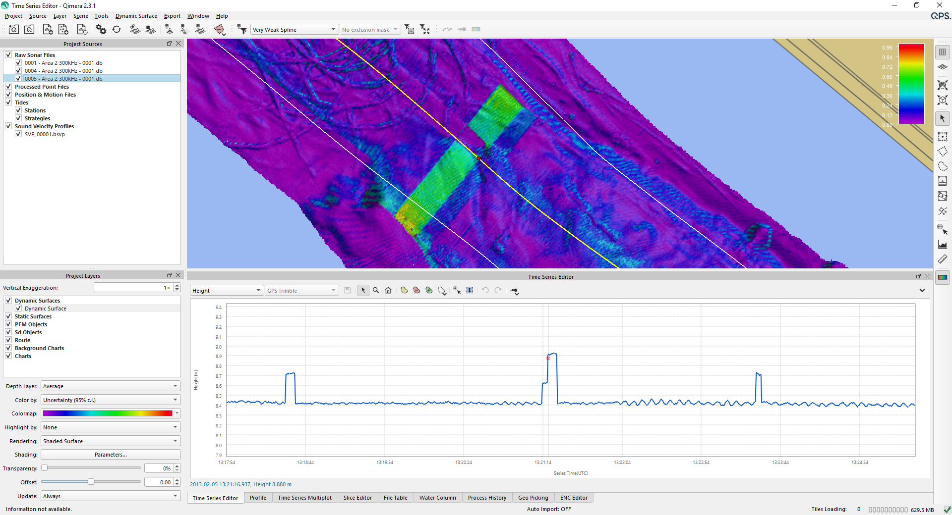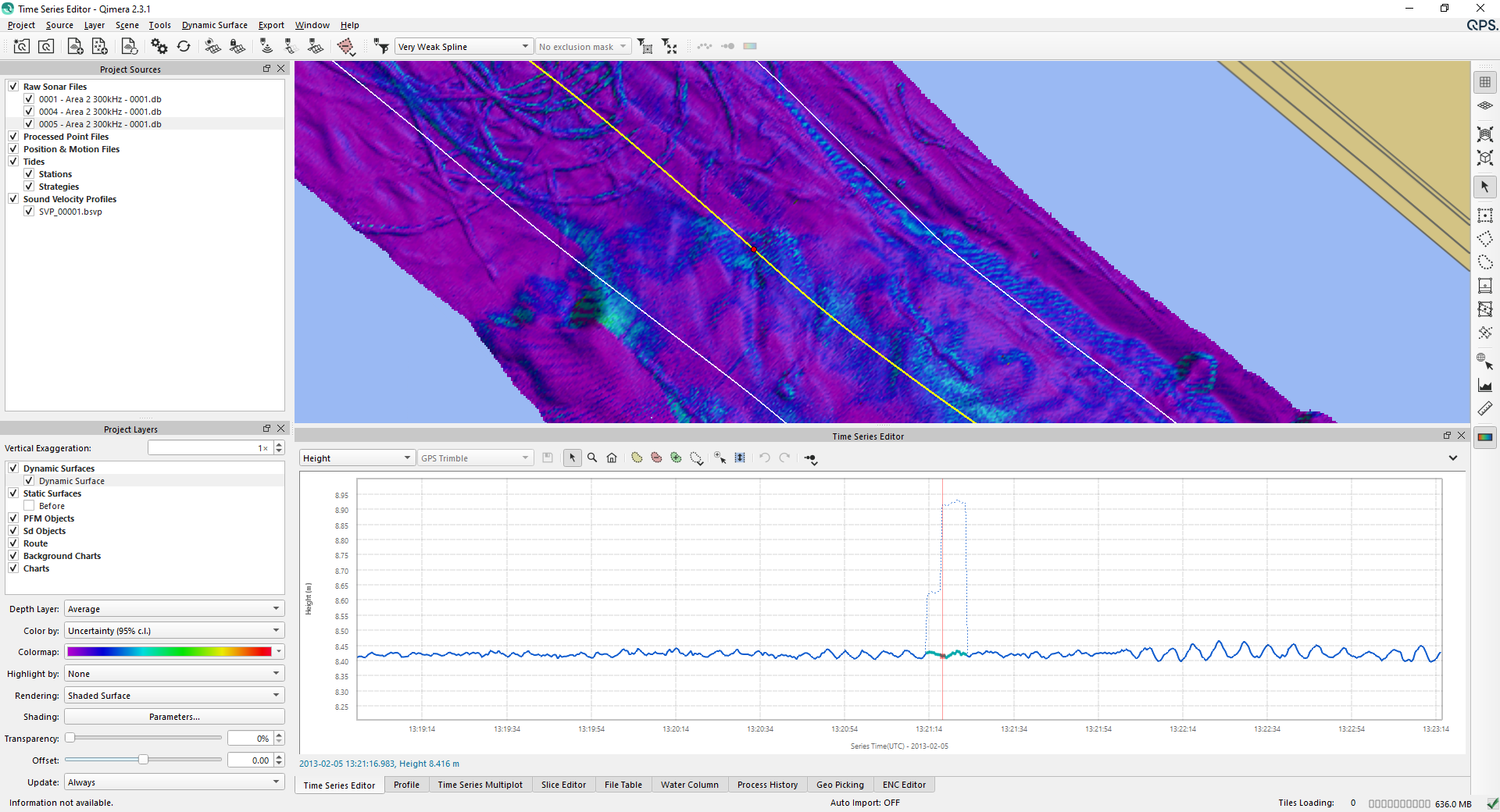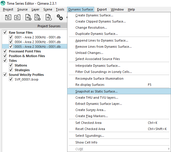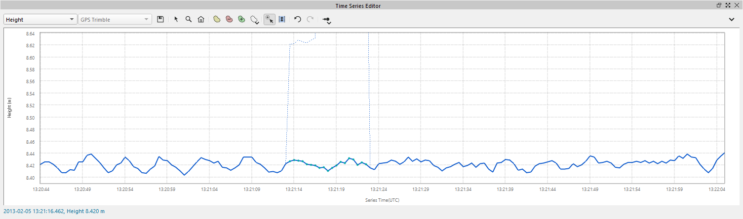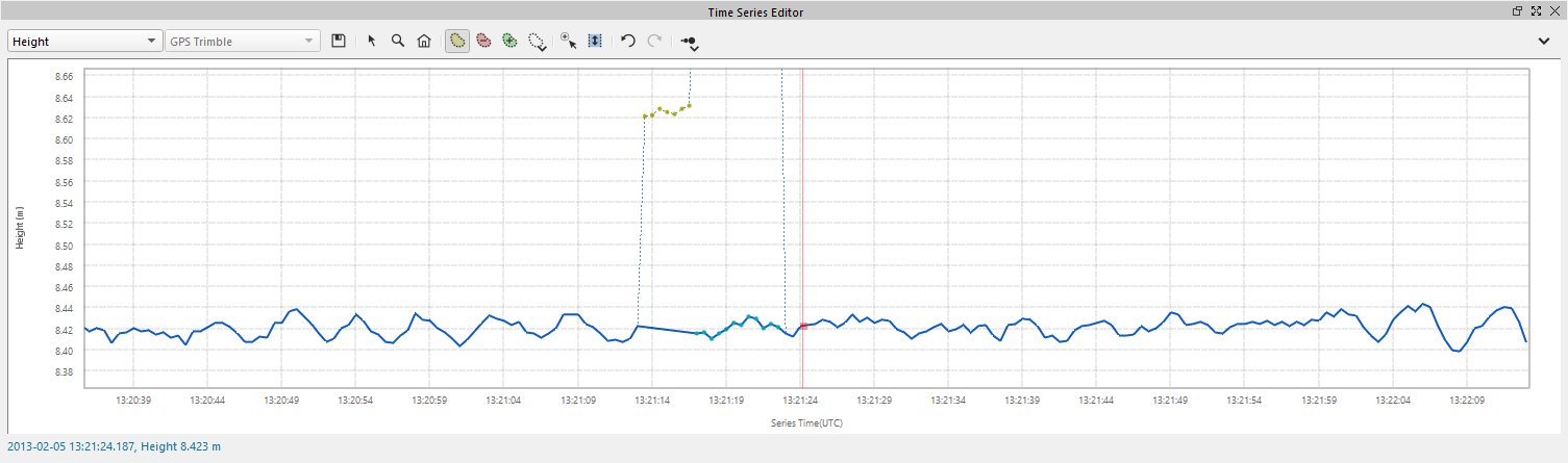 Time Series Editor is used in addition to other Qimera tools to QC and trouble shoot data. The Time Series Editor is a graphical view of the time series (extracted from raw sensor data). The tool plots the measurements from all sensors associated with the particular source item. For example, if you have a source file with two motion sensors, the data from both sensors will be displayed simultaneously. More info can be found in:Qimera Time Series Editor Dock.