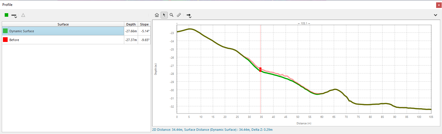 It is also possible to generate a profile to see the difference of the new surface compared to the original surface. To generate a profile right click and drag on the surface.