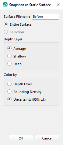 The reprocessing of the sounding results that occurs after completion of the algorithm run in Step 4 will trigger the automatic update of any Dynamic Surfaces that use the selected lines. This is why it is helpful to have a Snapshot surface first, you can compare the results before and after the tool is run.