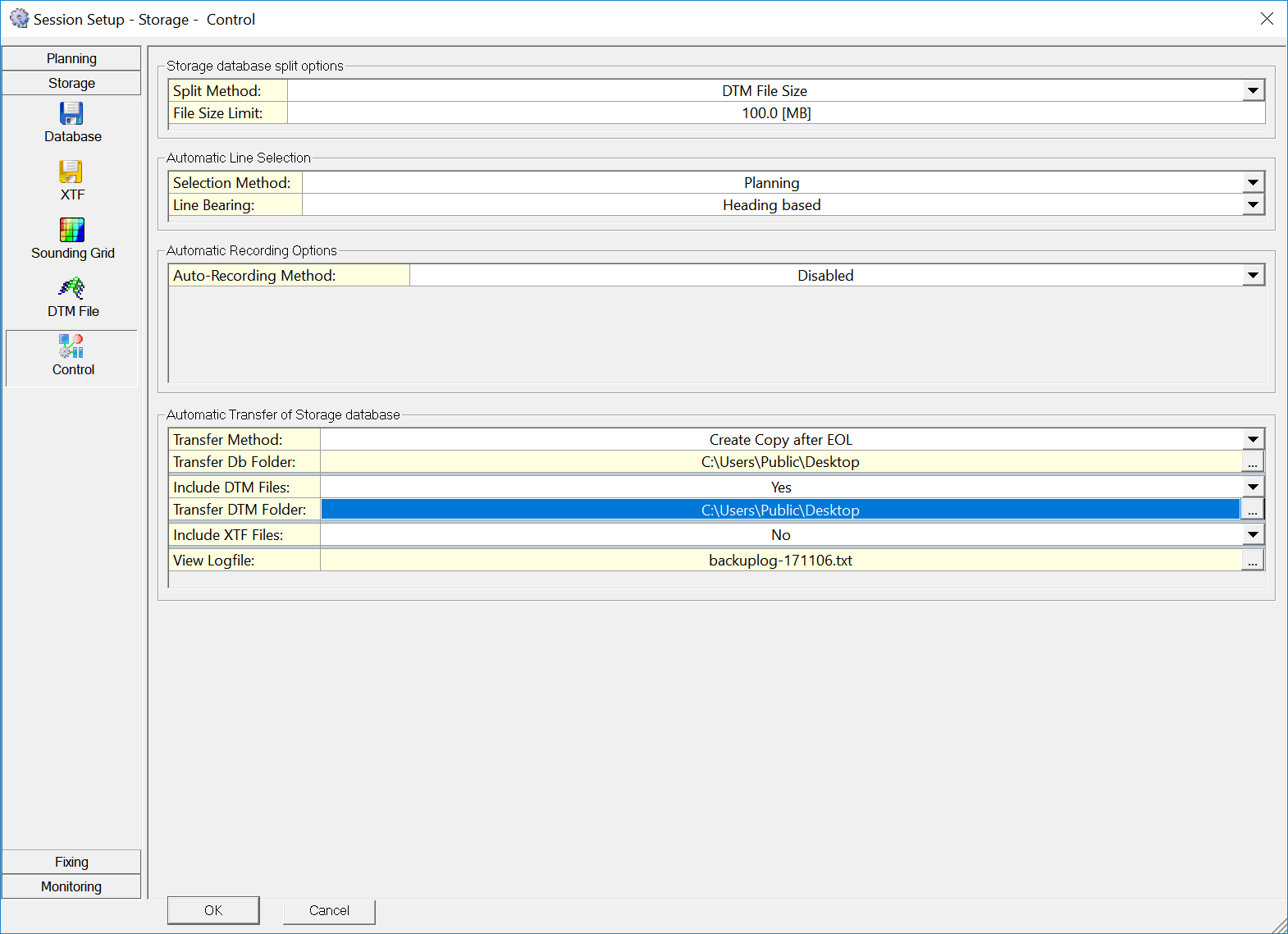 In the Qinsy Controller window go to the Settings menu, choose Session Setup and go to the Storage configuration panel on the left side of the dialog. In the Automatic Transfer of Storage database section of the "Control" configuration, set the Transfer Method to 'Create Copy after EOL', and also specify the directory in which you'd like the copy to be made. This directory should be remembered, as it will be the directory in which Qimera will look for new data.