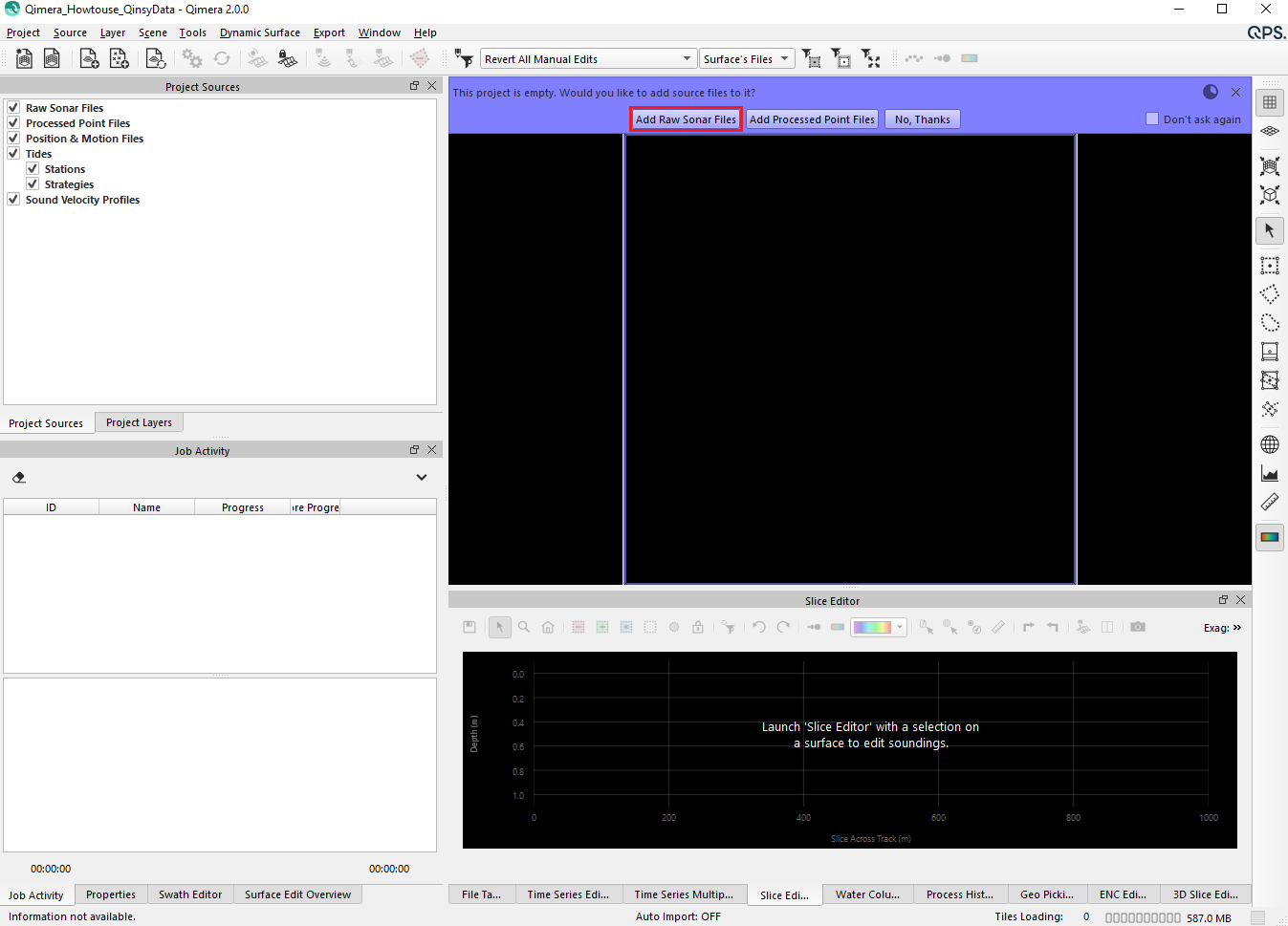 Alternatively, you can add Raw Sonar Source Files by clicking the Add Raw Sonar File Button