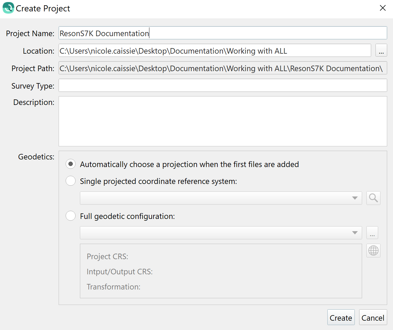 Automatic - Qimera will automatically extract the project coordinate system from source files or choose an appropriate UTM zone when loading Reson S7K files by looking at the geographic navigation extents.