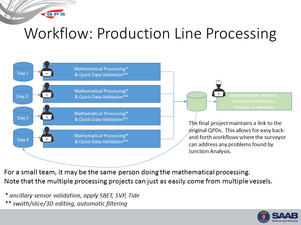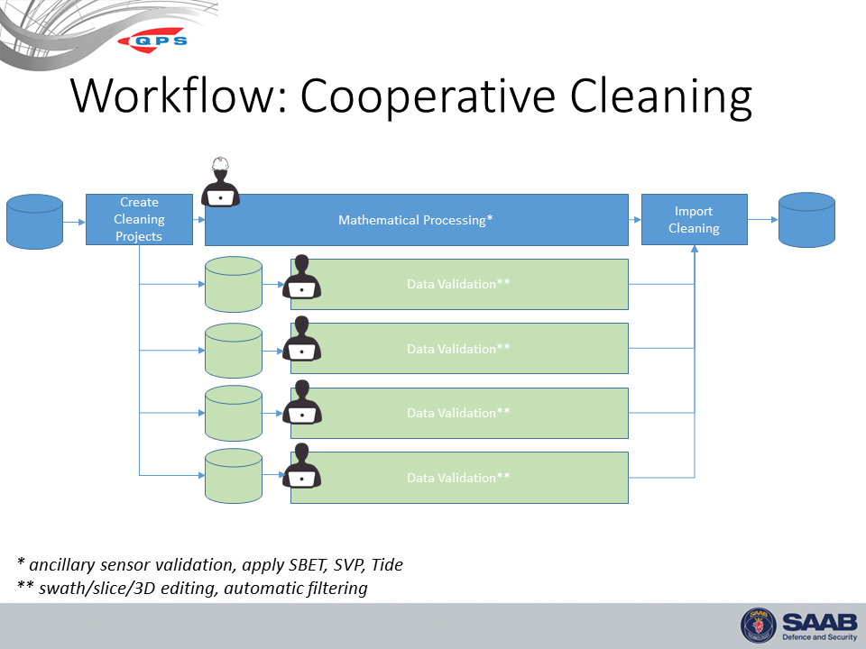 - For a Hydrographic office, a hydrographic survey can be portioned up between the bathymetry appraisal team for full validation by each person, but then pulled together at the end for final QC and then chart production requirements.