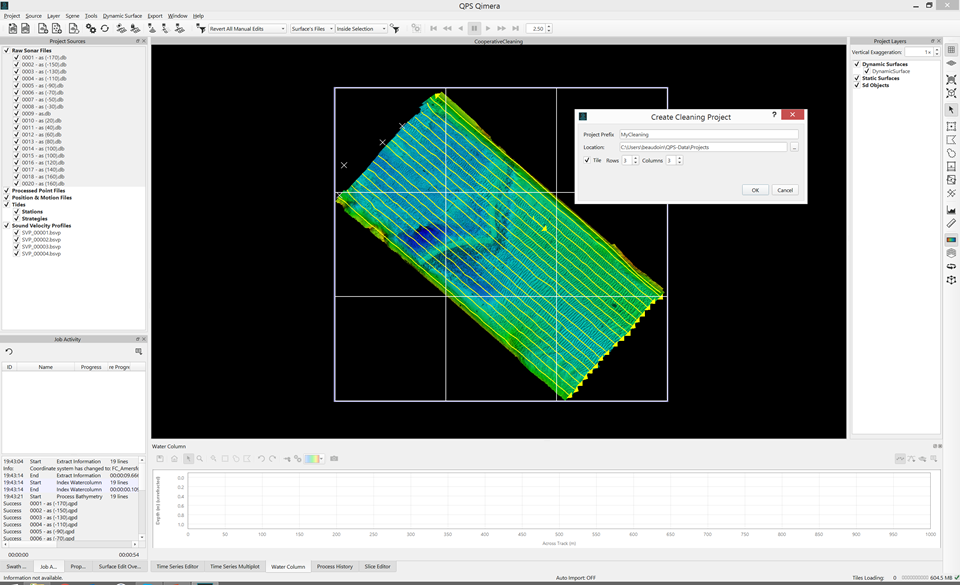- Cooperative Cleaning: Allow multiple users to collaboratively clean large data projects while maintaining data integrity. This is done by splitting up a master project into several smaller sub projects. The master project maintains full data processing capability while cleaning sub projects only allow data editing. Data cleaning staff work in their sub projects and their cleaning efforts are checked back in to the main project once complete. In the meantime, the main project may have had reprocessing done, like SVP or SBET application, and the cleaning from the cleaning projects is copied right in gracefully without affecting reprocessing efforts done in the main project.