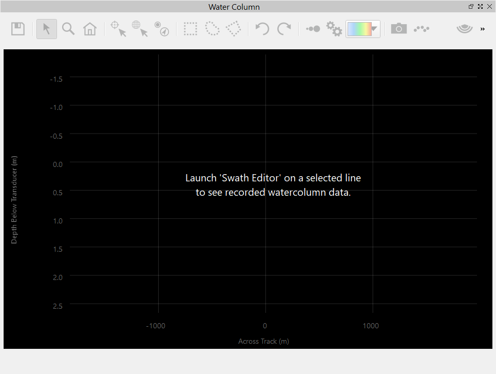 We've made two small improvements to docked windows. There is now a button to maximize a docked window, for use when it is undocked and floating. This allows you to maximize use of screen space for docks where you need a lot of graphic interaction like the Water Column or Slice Editor docks. A maximize icon will appear in any window that is undocked from the main application panel. Also, to improve usability, we have added text overlay cues in the docks to help users discover how to launch and use the tools that they'll find in the default display layout. Below you see an example of the Water Column dock, with the text cue steering the user towards launching the Swath Editor in order to visualize water column data.