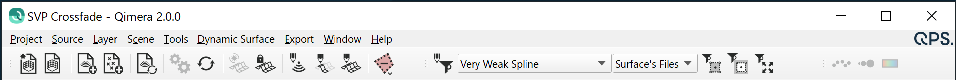 Starting at the top of the interface, users will notice that the project name is in the title bar of the application. Below this in the menu section, users will notice that we've added the QPS logo to the far right. Clicking this will launch web browser and will take you to the QPS website where you can access help, downloads, support information, etc. Of the default toolbars displayed at the top in the default layout, we have removed the Selection Movement toolbar to reduce clutter since this toolbar is not used as often as others.