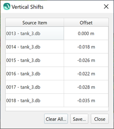 Additionally in the Processing Setting dialog, you can review the offsets for all files at any time. You can save the offsets to a text file to include in any reporting.