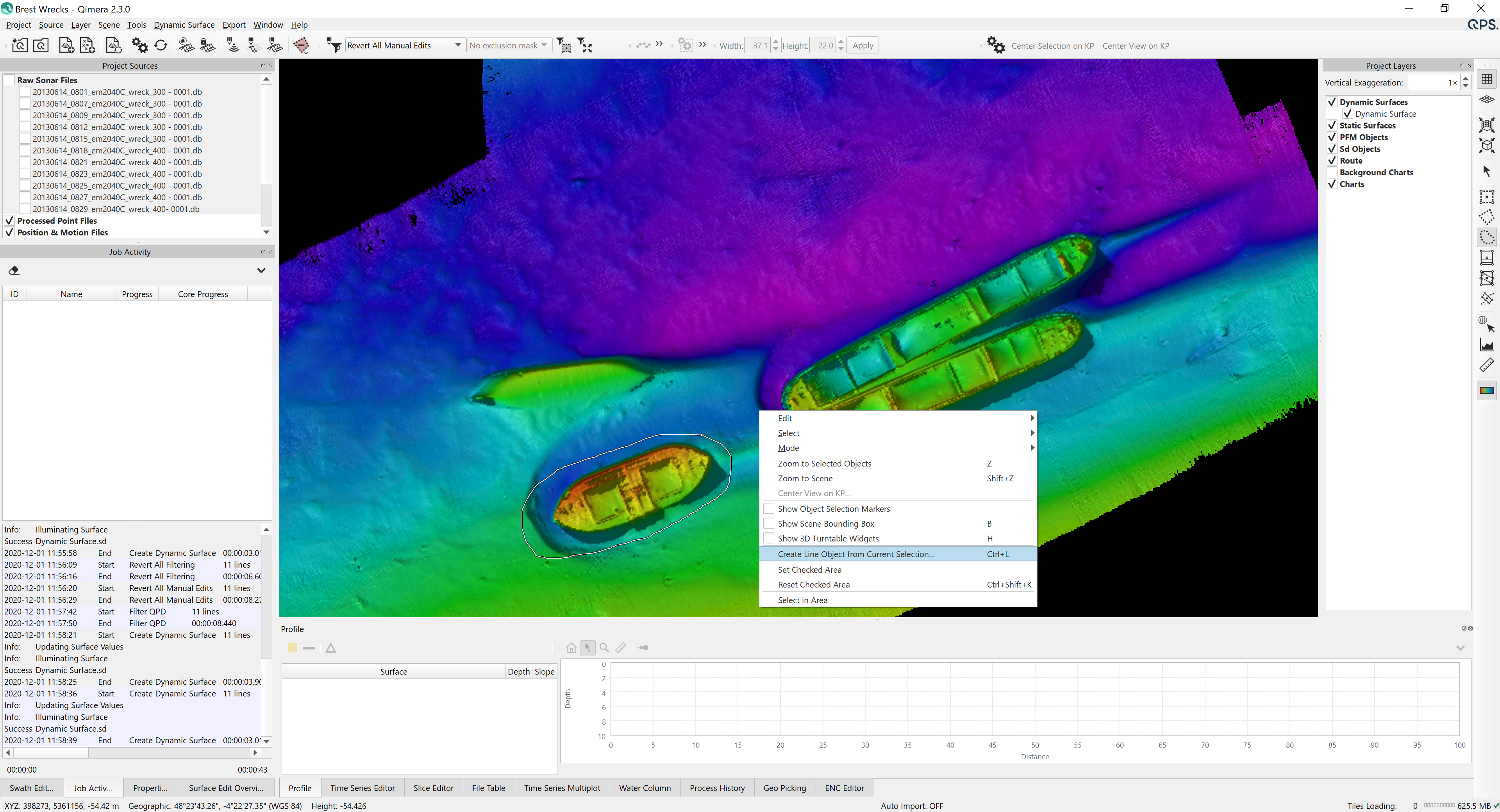 - For multi-object setups with subsea vehicles such ROV/AUV, Qimera will now also extract any pressure or depth sensor time-series for depth calculation for the ray trace start point along with the QPD object track for vertical georeferencing when the object type is configured as ROV or AUV.