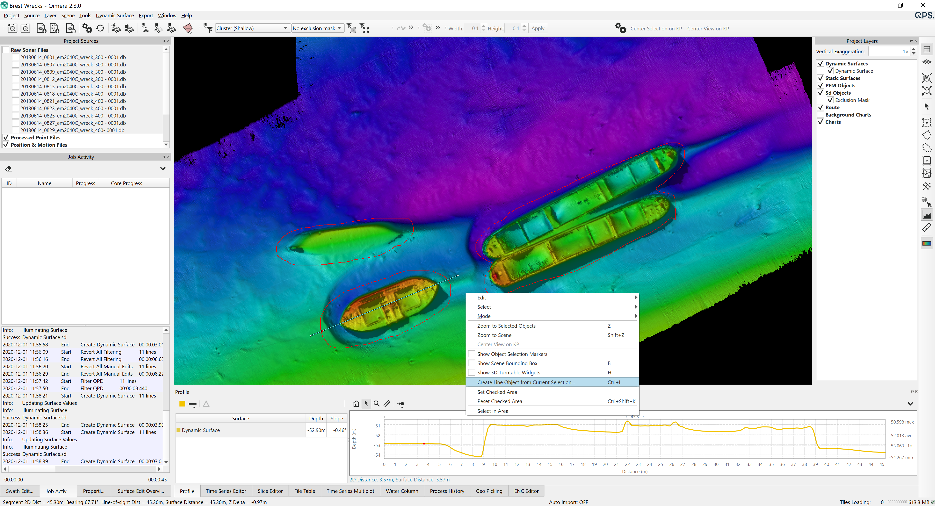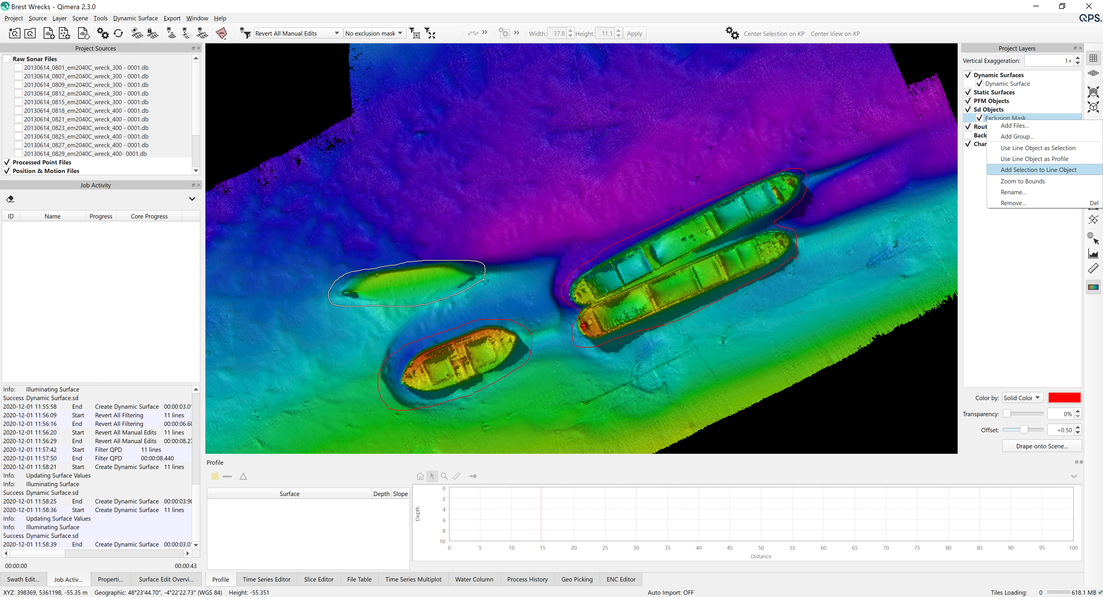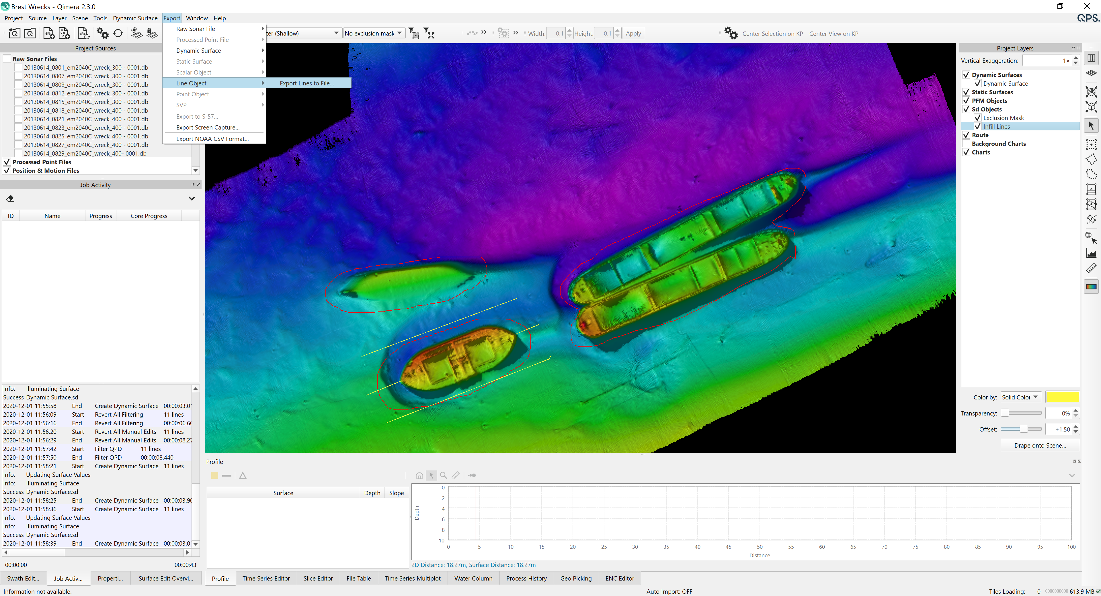 With this release, we have made improvements to better support multi-object configurations, for example, a surface vessel with an ROV operating simultaneously. The major improvement is that the QPD object track is extracted for both objects, allowing for full raw sensor processing for both objects. Previous versions of Qimera did not support object track extraction in the event that both objects were simultaneously collecting multibeam data, nor was it systematically done in instances where only one object was collecting multibeam data.