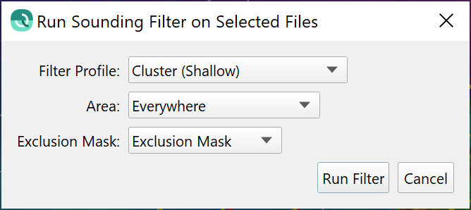 Once you select the option to filter your files, a dialog will appear that lets you choose which filter to run, which area to run it in and finally whether or not to use an Exclusion Mask.