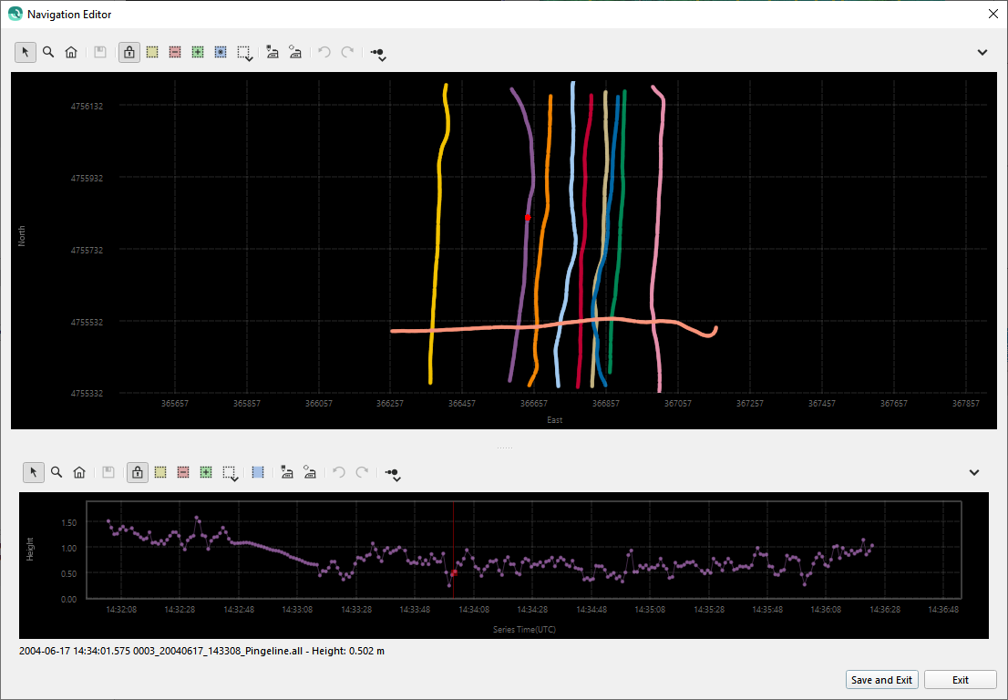 Navigation Editor showing the XY and Height time series