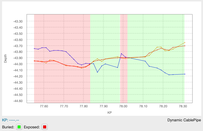 Cable/Pipe Analysis tool showing where the cable/pipe is buried or exposed along the route