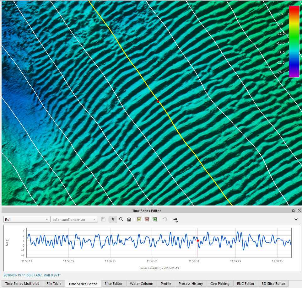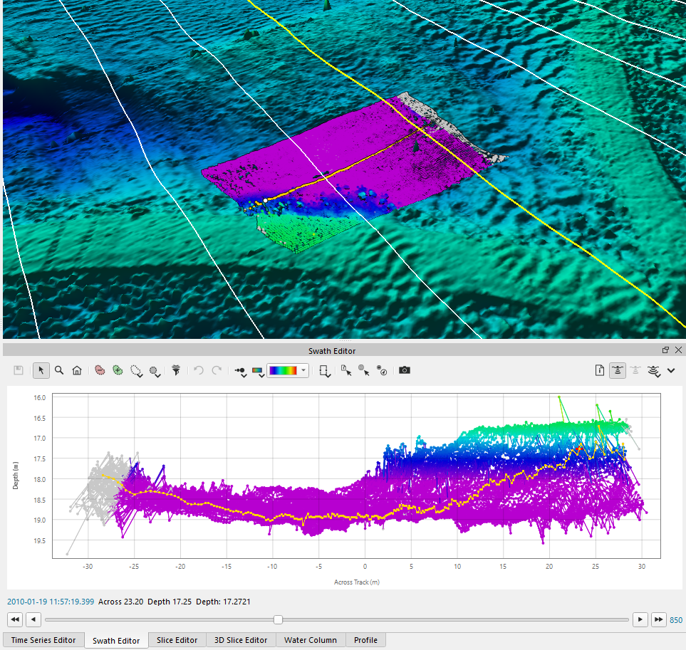 You can also see the correlated swath location when using the Swath Editor Window as shown below.