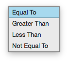 Selecting the Iscombo box provides a list of comparison operators. The comparison operator will be associated with the value entered into the adjacent text field.