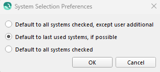 Use the "System Selection Preferences" option to set the default behavior of the systems list.