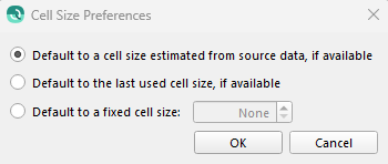 "Cell Size Preferences" opens a dialog were you can set the default cell size options. These preferences will be remembered when you create another static grid.