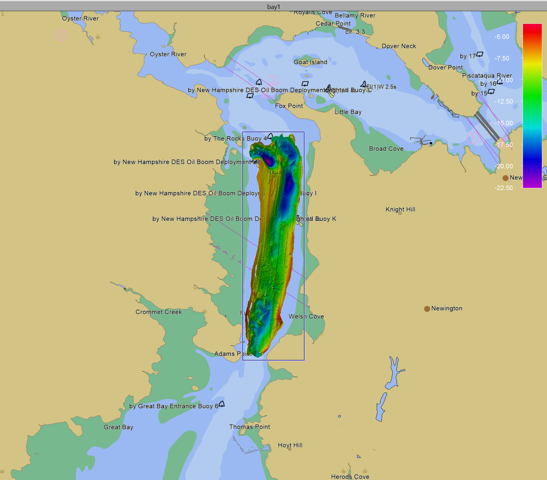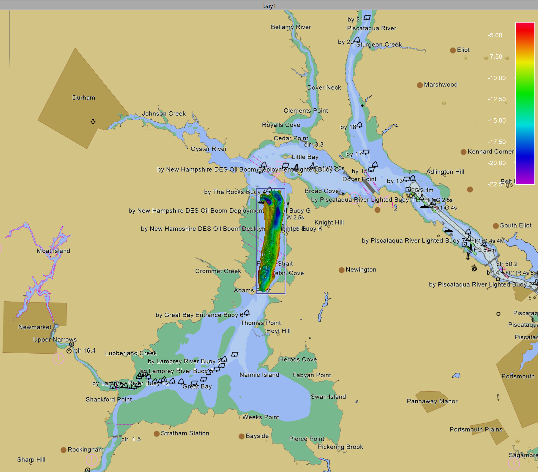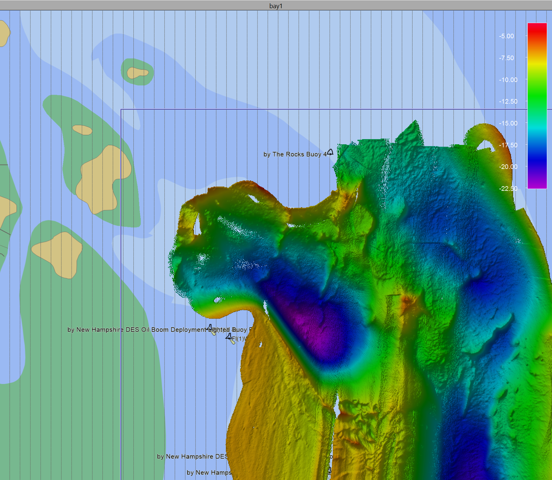 If you add additional ENCs using the ENC Administrator, simply create a folder inside the above folder when doing the conversion. These maps will be automatically used by Qimera projects. ENCs are used in Qimera for contextual information only and are not intended for navigation purposes. They can be display in the Surface Edit Overview window as well as the main 4D Scene when in 2D mode. As you zoom in or out of the scene, the detail level will automatically change as shown in the images below.