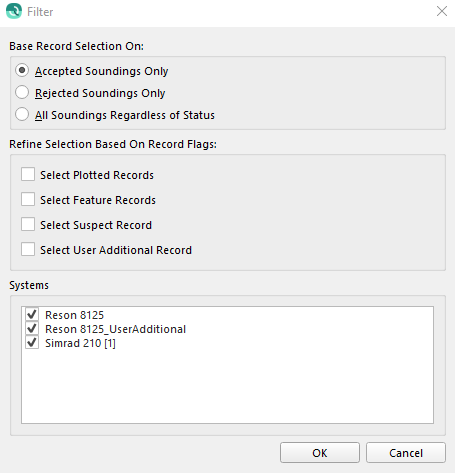 Filter soundings based on All Soundings, Accepted Soundings or Rejected Soundings.