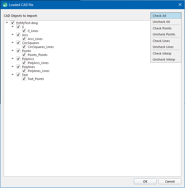After the user selects the coordinate system, another dialog pops up which allows the user to select which CAD layer to import.