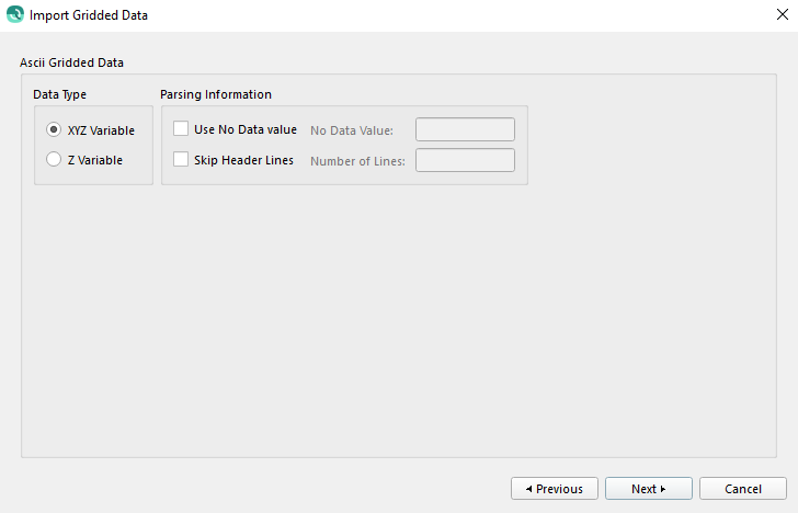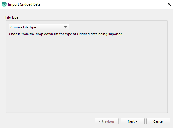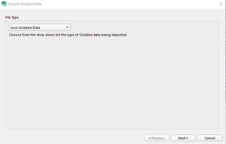 This page is used to choose the file type of Gridded Data that is being imported.