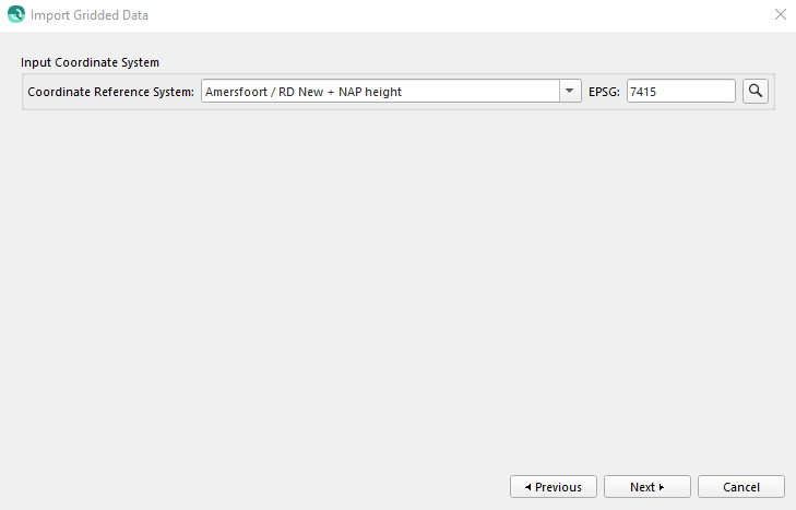 This page is used by all grid import types. This is the coordinate system of the gridded data. See the section on Selecting Coordinate Systems for more information.