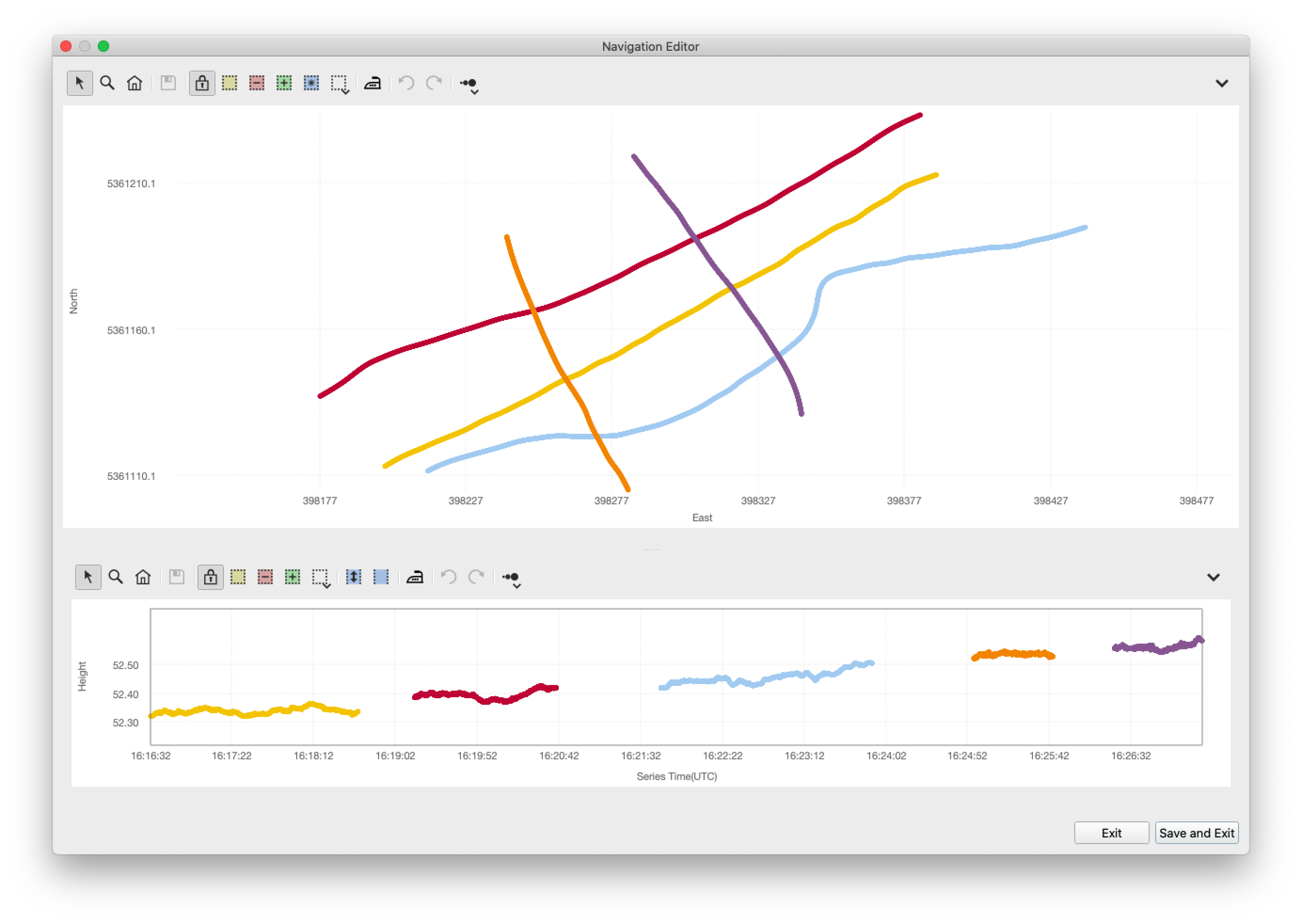 The Navigation Editor allows basic inspection and cleanup of horizontal and vertical position data.