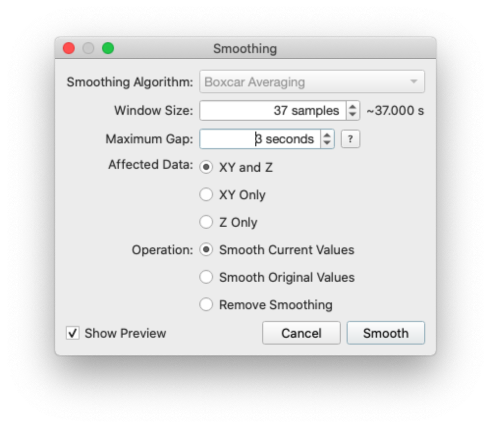 The Show Preview checkbox will show/hide a smoothed representation of your data in the main dialog.