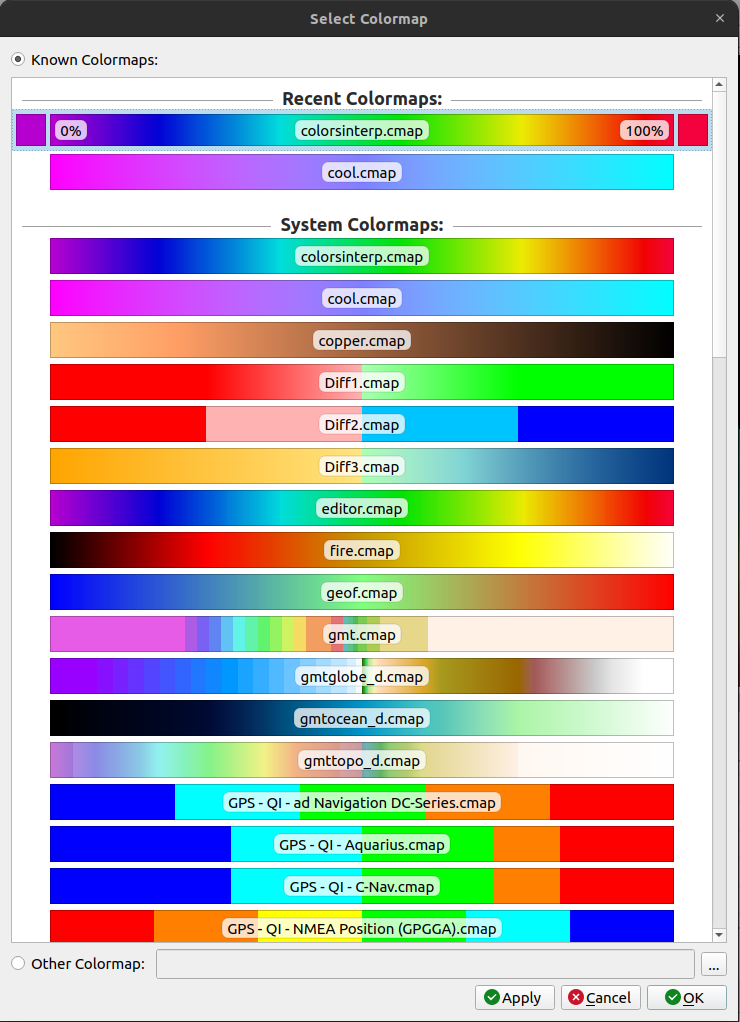 Qimera Select Colormap Dialog