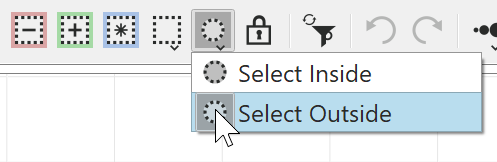 This button places the cursor in Accept Selection mode. Holding down the CTRL key will invert the mode between Reject and Accept. Use the selection style and selection area drop down buttons to modify the selection style.