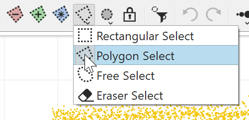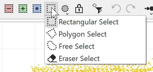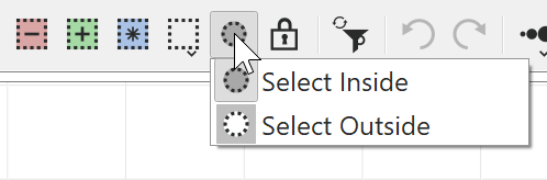 This button places the cursor in Reject Selection mode. Holding down the CTRL key will invert the mode between Reject and Accept. Use the selection style and selection area drop down buttons to modify the selection style.