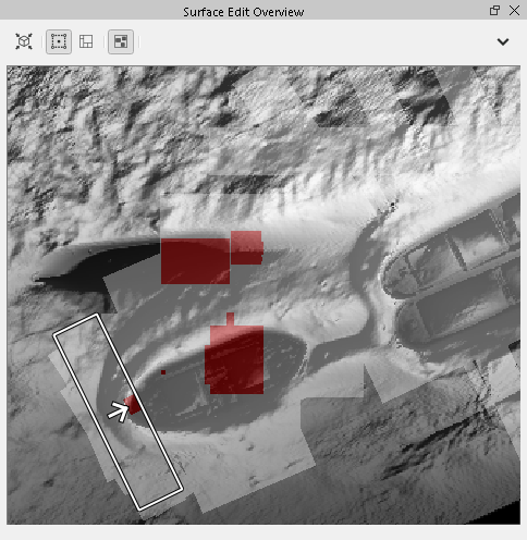 Manual Editing is the default state of the Slice Editor. You simply create a selection area on your Dynamic Grid using any of the area selection tools, do your editing, then move your selection to a new area on the grid. You can change your selection in either the 4D Scene or the Grid Edit Overview. If you have the Show Visited/Edited option enable for the Grid Edit Overview, you will be able to see which parts of the Dynamic Grid you have visited (loaded in the slice editor) and which areas you have edited. You can see an example of this below. The visited areas are a transparent white shape that matches the selection where as the edited areas are a transparent red rectangle based on the extents of the soundings you have updated.
