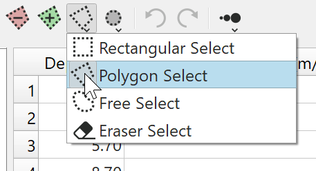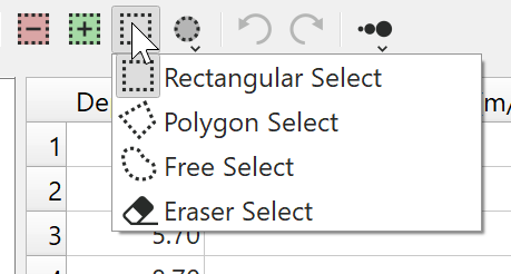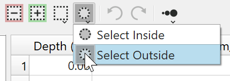 This button places the cursor in Reject Selection mode. Holding down the CTRL key will invert the mode between Reject and Accept. Use the selection style and selection area drop down buttons to modify the selection style.