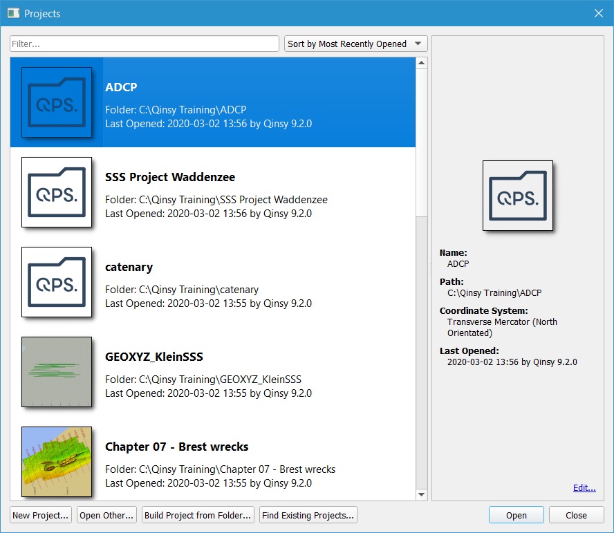 Qinsy Survey allows the user to store data on project basis. As soon as a new project (folder) in Qinsy is started a number of sub folders will be created.