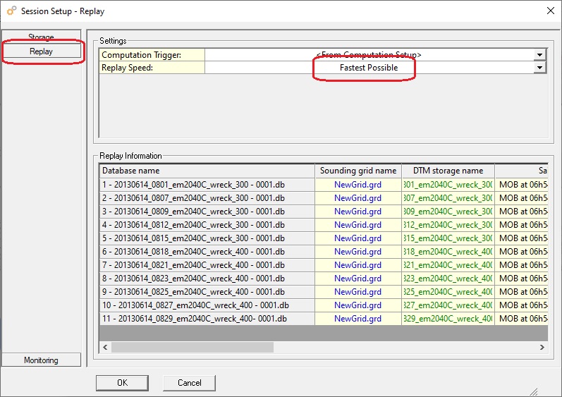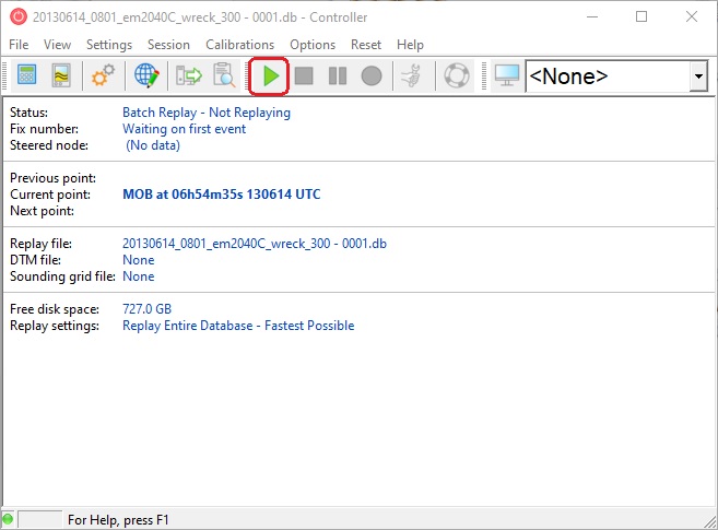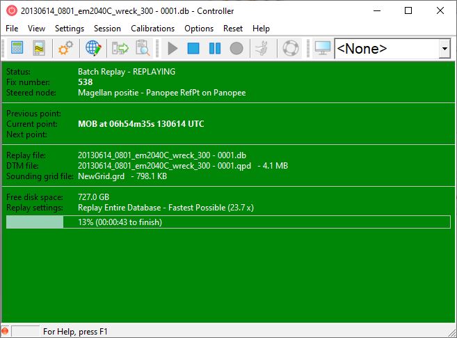 If all the settings are correct, replay of the data can be started. It is possible to either replay a single survey line (database) or a batch of lines.