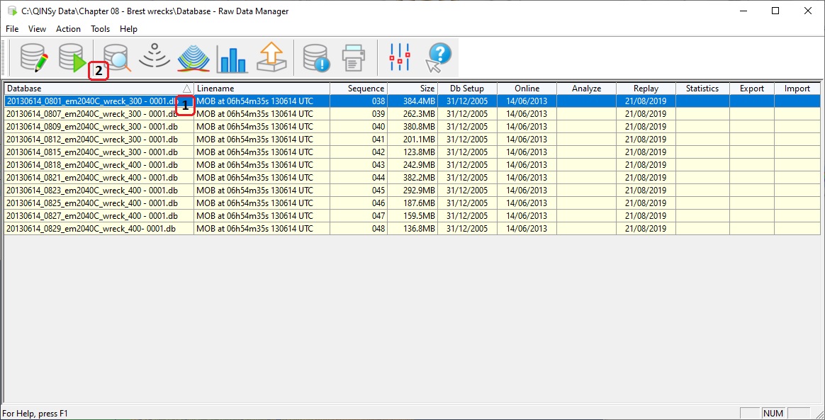 Select a recorded database in the Raw Data Manager