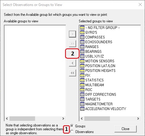 It is possible to define new groups or use the default groups.Use the > and < button to send observations from one panel to the other. Use the >> and << buttons to send all observations.