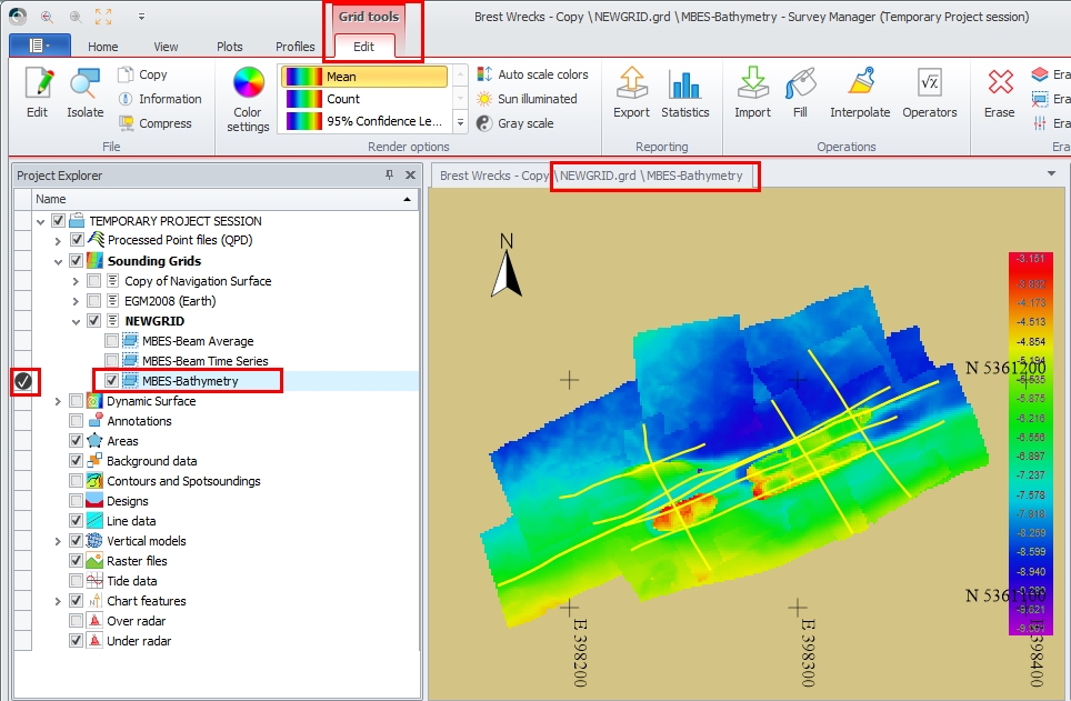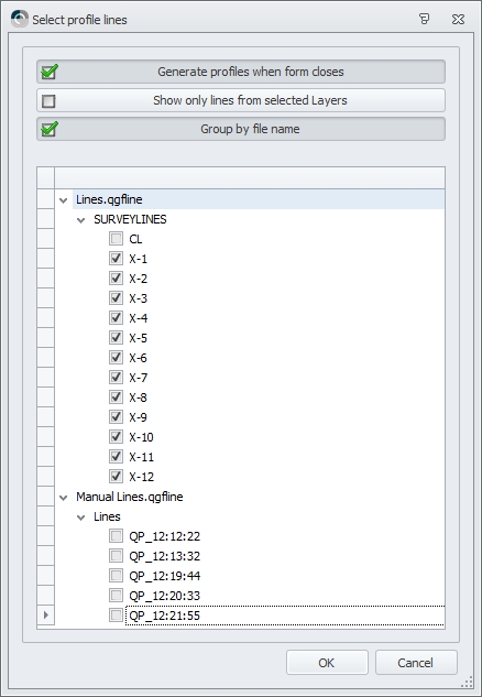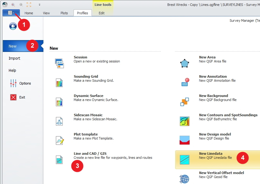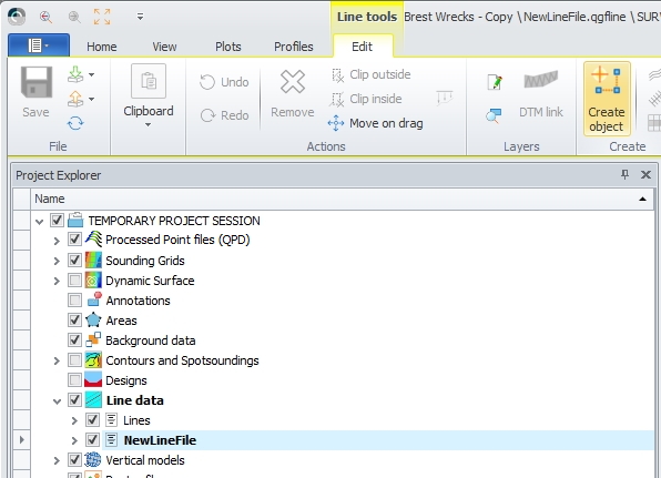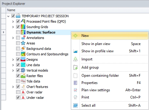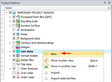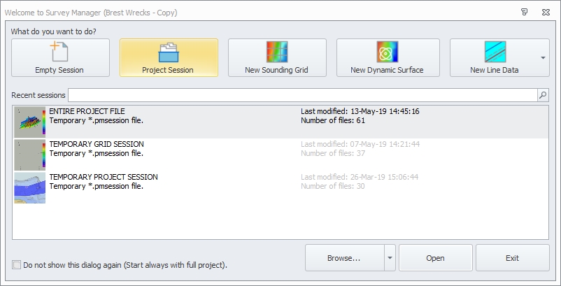 When choosing Project Session all available files (like QPD files, Sounding Grids, line data, background data, etc.) in the project will be loaded.