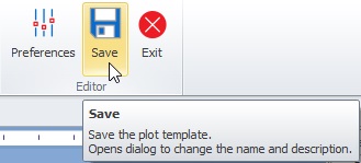 Editor - Use the Editor group to set up how the designing space should look and behave, save or exit the Plot Template Editor.