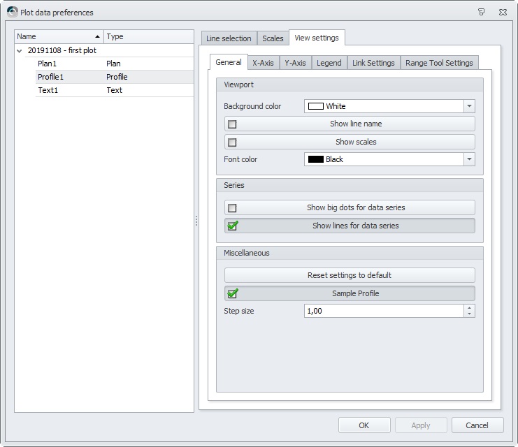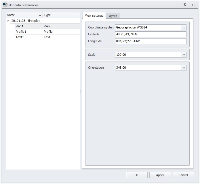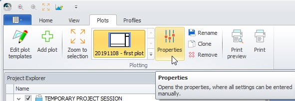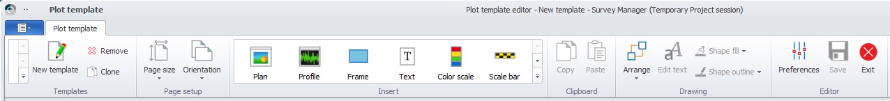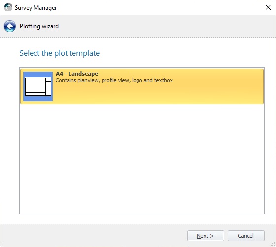 Plotting in the Survey Manager requires a Plot Template. This template can be used in any project. The template itself is a layout of a specific paper size and can contain any number of plan views, profile views, frames, images and text elements.