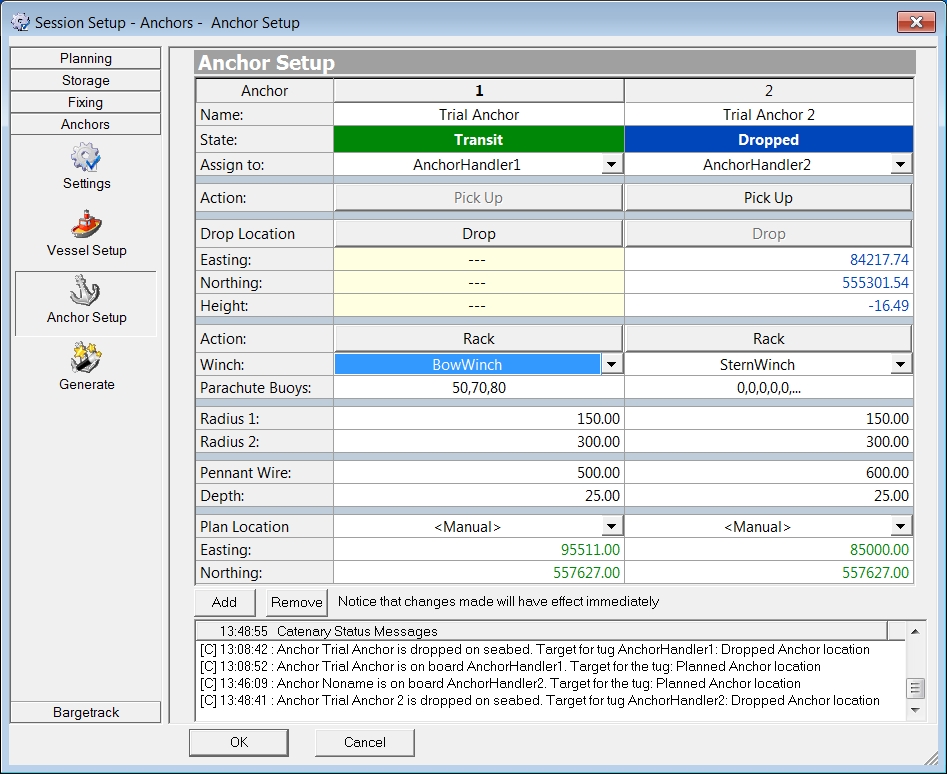| Winch | Assign an anchor to a Fairlead/Winch on the barge. The status of the anchor will change from Free to Not Assigned. |
