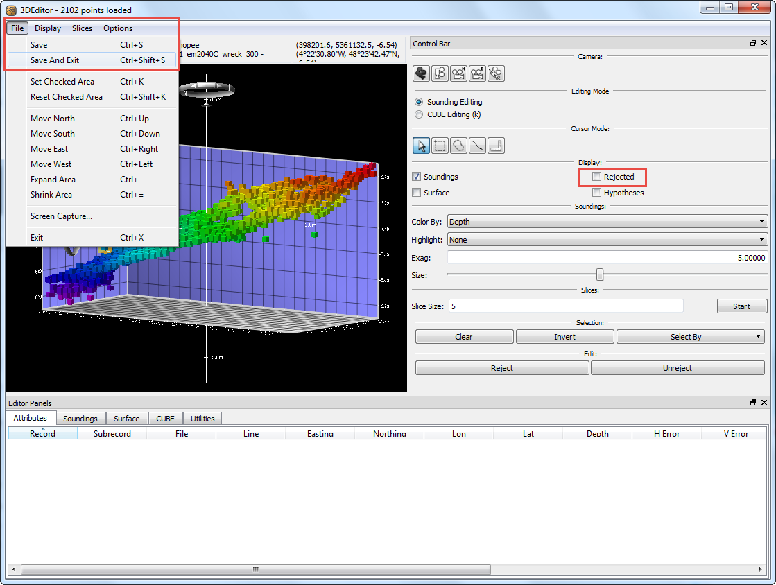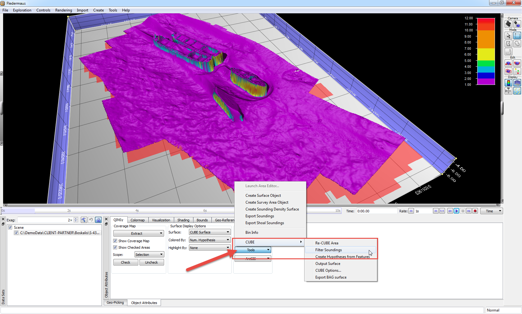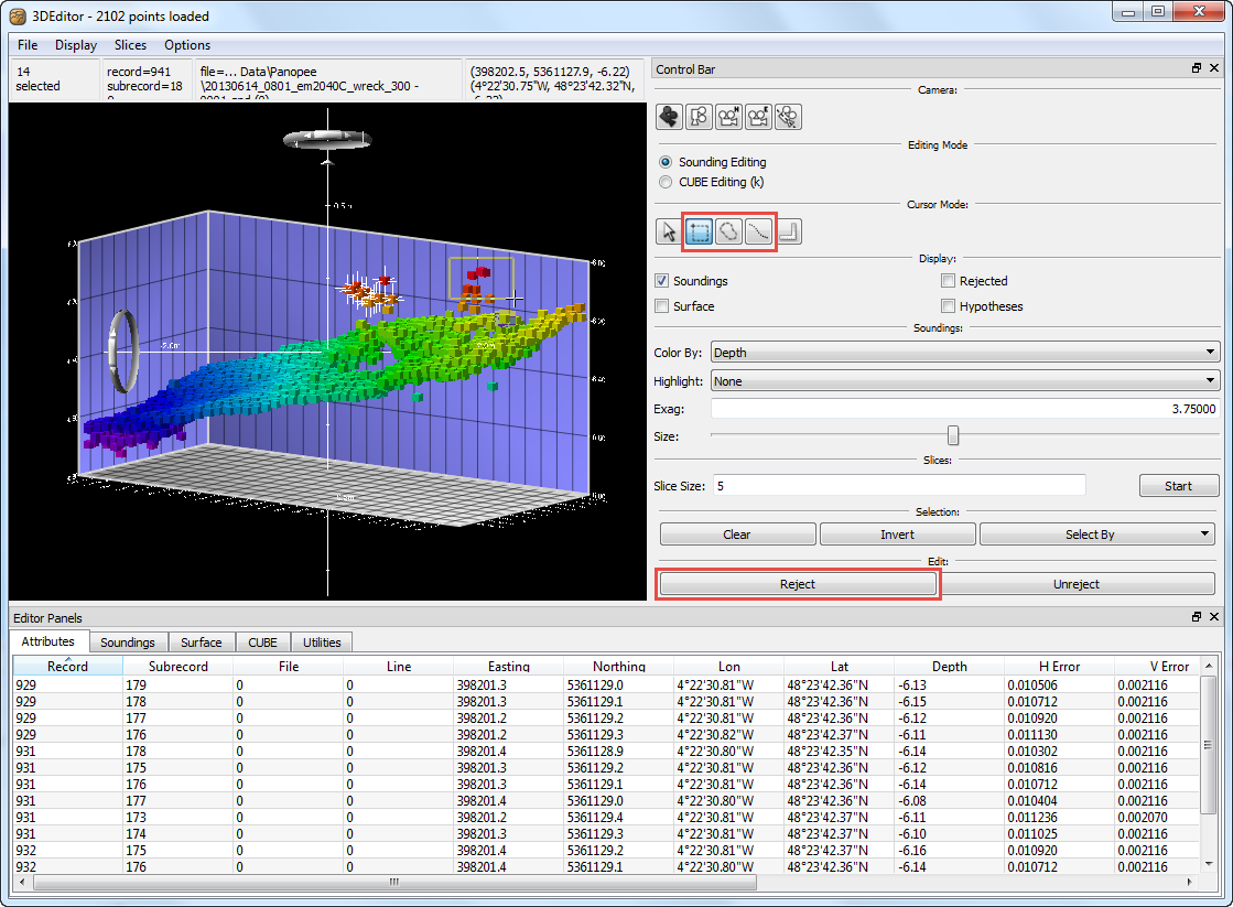Once you have validated the surface, use CUBE Filter Soundings to automatically flag points outside of the CUBE surface as rejected for final cleaning.
