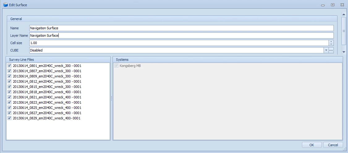 Pre-set CUBE settings, based on water depth, can be applied and the CUBE surface is part of the Dynamic Surface