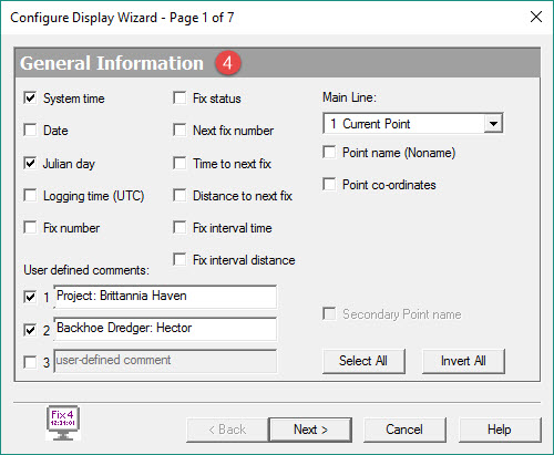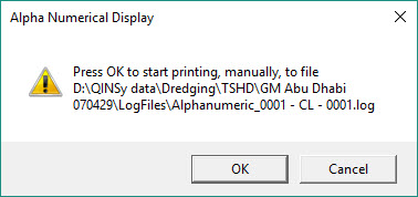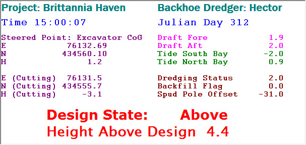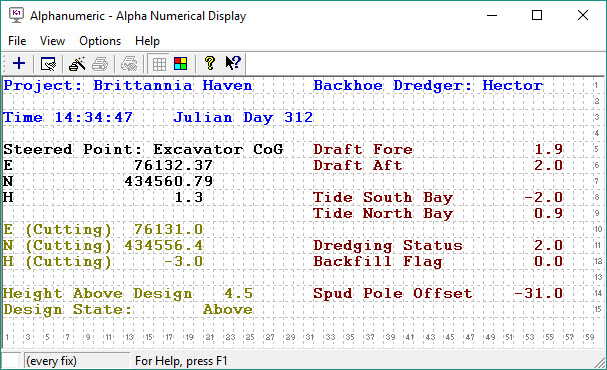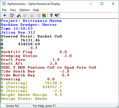 This Display can be configured to show a great many of the parameter values handled by the acquisition software, including various dredging related information.