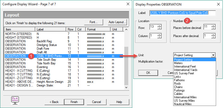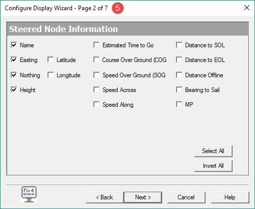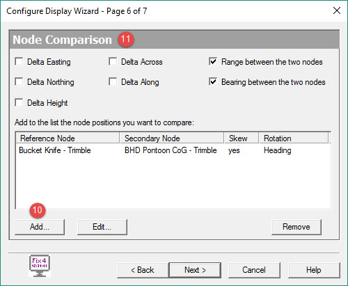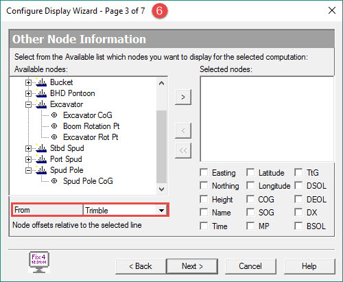 In this example the Bucket CoG is made the Steered Node so Name, Easting, Northing and Height are selected.
