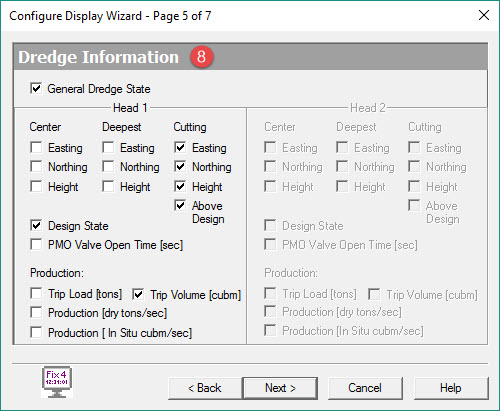 If a dredge system with two dredge heads is selected in Database Setup, information for “Head 2” is also available.