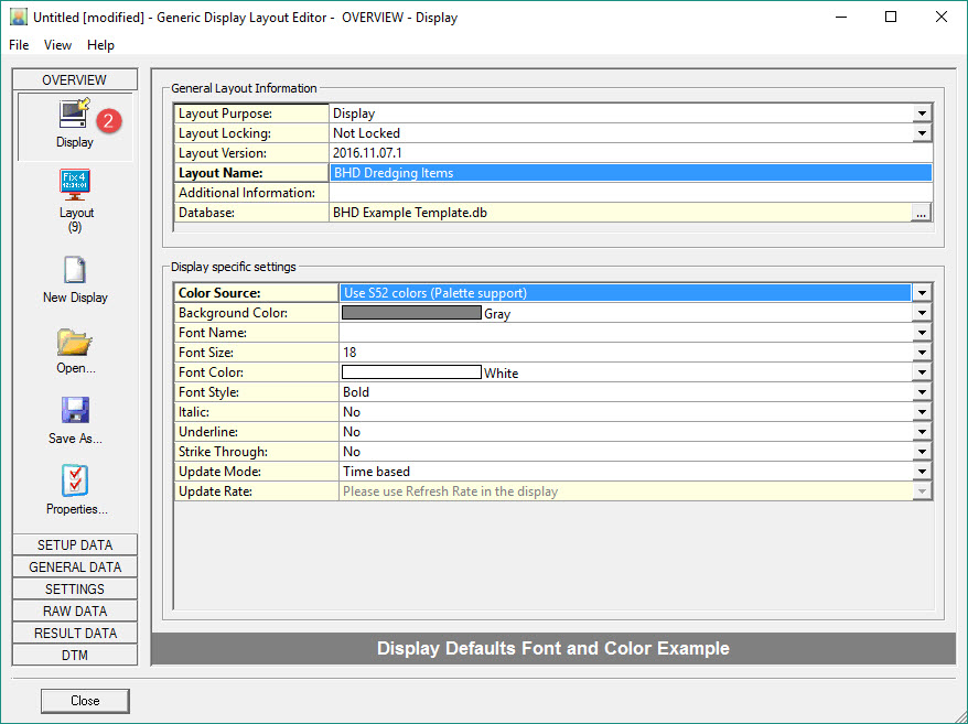 User configured settings of a generic display are stored in an *.xml file saved in the \Settings\Display folder of the current project.
